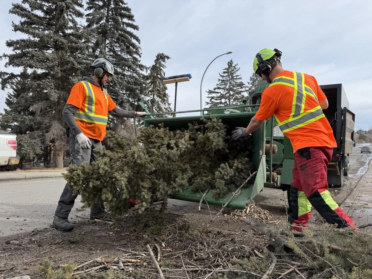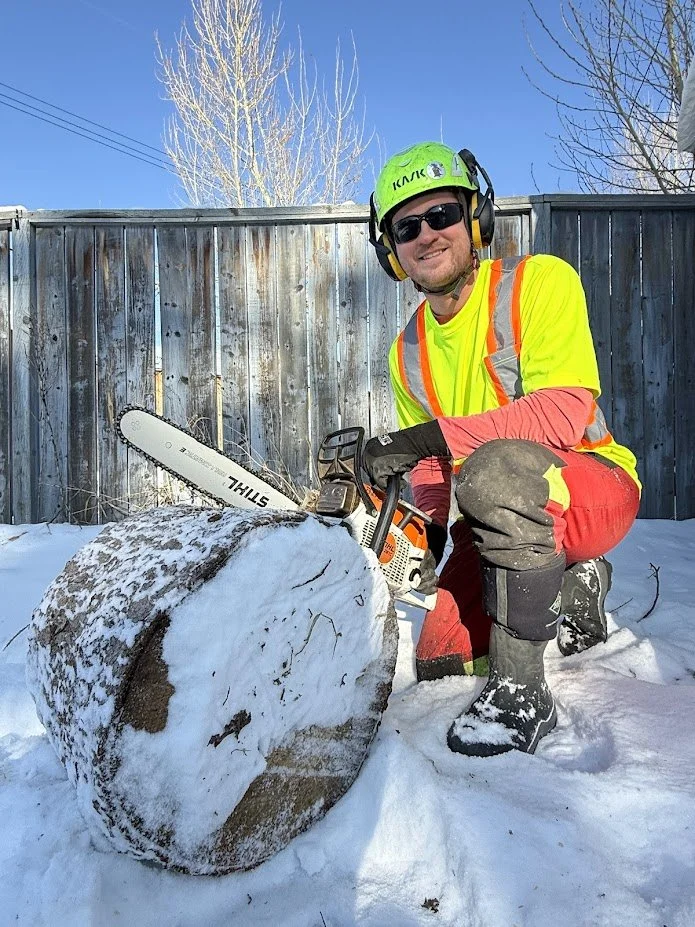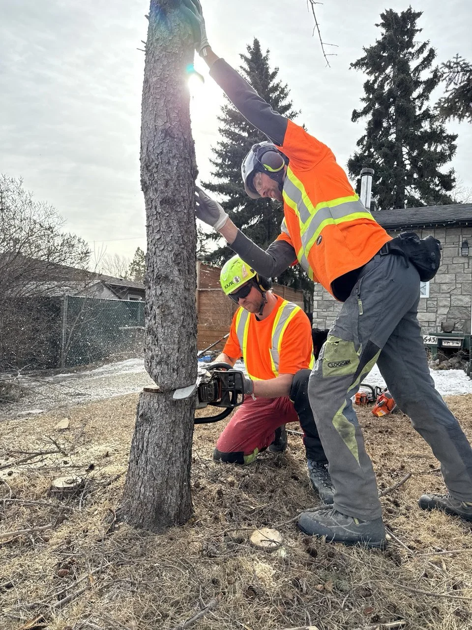 Power lines involved? Call ENMAX first (403-514-6100 for emergencies). They need to make the area safe before anyone can work on the tree. Then call us.
