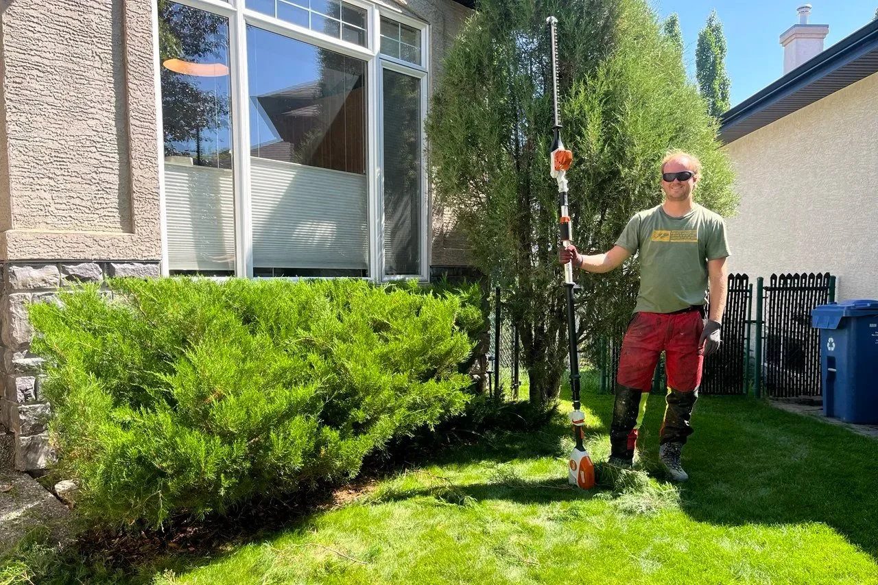 We usually trim hedges about 1-2 times per growing season, depending on how fast they grow and your preference. The typical schedule for Calgary is a major trim in late spring/early summer (after the first flush of growth), and an optional light trim in late summer or early fall to tidy up before winter. We avoid very late fall trimming on certain hedges to prevent stimulating tender growth that could be nipped by frost.